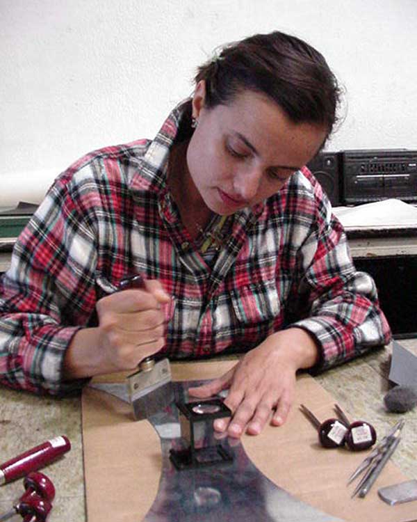 Água-tinta, água-forte, mezzotinta, colagem, decoupage, aquarela, técnica mista, video, objetos são linguagens usadas para a produção autoral da artista.