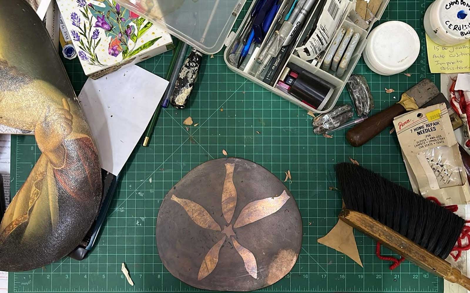 “As práticas artísticas biográficas e autobiográficas expandem a minha prática ao autoconhecimento. As afinidades com o metal e o papel, em suas formas mais puras, atravessam minhas mãos, se transformam, se solidificam e revelam as adversidades e conquistas do meu dia a dia.”
