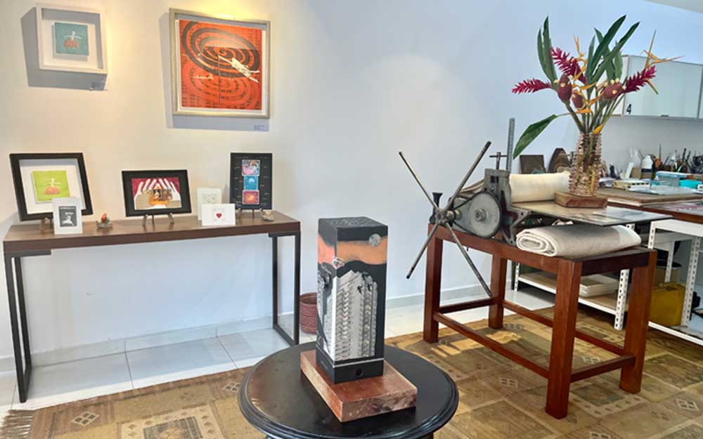 As obras de Jimena podem ser vistas no Impact Hub Ubatuba. Lá você encontra a mostra coletiva de artistas “AFETOS” e produtos locais de Ubatuba.